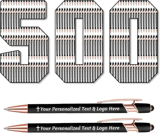 STREADVE 500 Personalized Custom Pens Engraved Writing Pen with Name Logo, Customized Promotional Items Stylus Pen Gifts for Men Women Realtor Nurse Wedding Business, Black