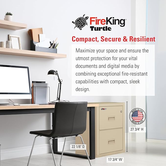 FireKing Turtle Vertical 2 Drawer Legal and Letter Fire Safe File Cabinet with Key Lock, 1 Hour Fire Rated, UL Rated & Water Resistant Home Safe, Filing Cabinet, Made in The USA, Parchment