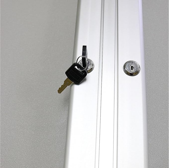 - Doors feature full-length hinges, shatter-resistant acrylic panels, flush mount locks and keys for added security.