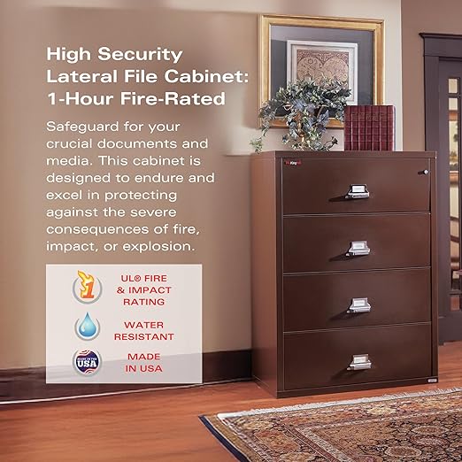 FireKing Lateral 4 Drawer Legal and Letter Fire Safe File Cabinet with Key Lock, 1 Hour Fire Rated, UL Rated & Water Resistant Home Safe, Filing Cabinet, Made in The USA, Black