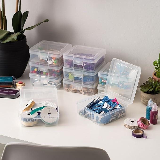 - ORGANIZATION: IRIS USA's 10-Pack Clear Plastic Craft and Pencil Box Organizer with snap-tight latch is perfect for organizing pens, pencils, small tools, card stock, embossing folders, and other supplies. Keep everything neatly in place.
