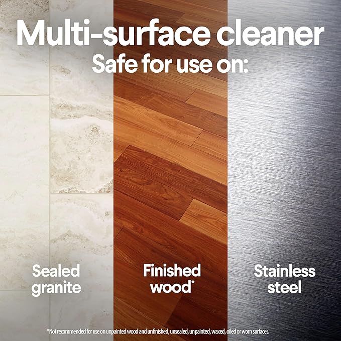 - MULTI SURFACE CLEANER: Wipes are safe for use on hard non-porous surfaces such as finished wood, sealed granite, stainless steel and non food contact surfaces in the home, office, classroom, car interiors and more
