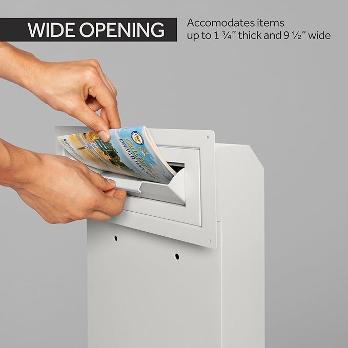 - LARGE CAPACITY - Features a precisely designed drop slot opening that can clear items up to 9-1/2" wide by 1-3/4โ thick. With a generous interior capacity of 505 cubic inches, this secure drop box provides plenty of space perfect for both residential and commercial use.