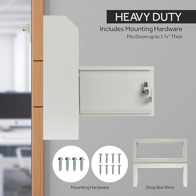 - SECURE โ Designed with security in mind, this wall-mounted drop box features a reinforced double steel door, a durable piano hinge, and two internal metal baffles to prevent tampering, prying, or fishing. The tubular lock and key system offers additional protection against unauthorized access.