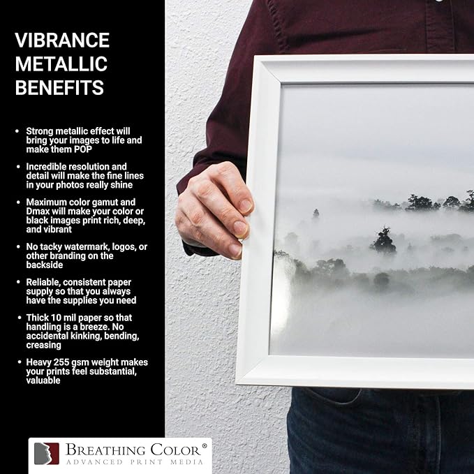 - 🖼️ PHOTO PAPER DESIGNED TO BE BETTER THAN THE REST. We don’t make printers and then just sell paper as an add-on product. Paper is our main focus. We worked to fine tune this photo paper to be the perfect blend of a strong metallic effect and a nice high-gloss sheen. When you want to impress, Vibrance Metallic Photo Paper is your go-to. Print your portraits, wedding photos, landscape shots and more to see just for yourself just how gorgeous Vibrance Metallic is.