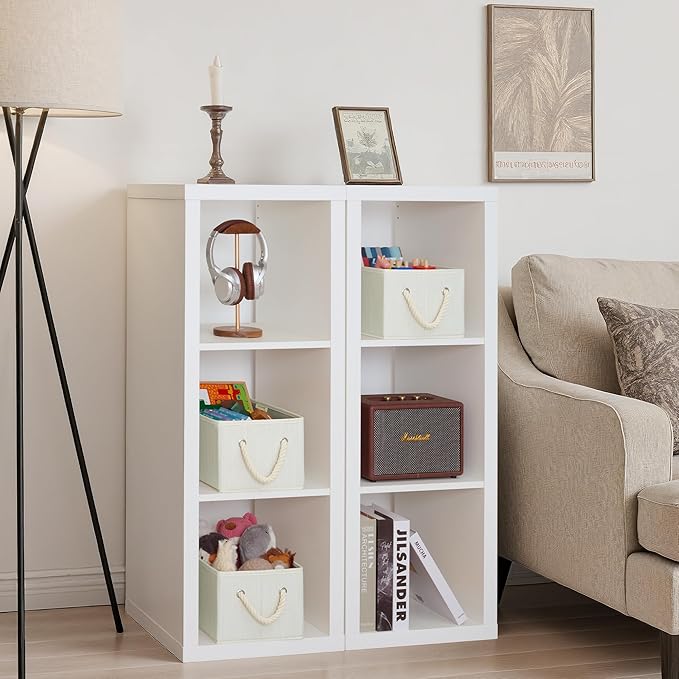 StorageWorks Storage Baskets for Shelves, Foldable Fabric Closet Storage Bins with Handles, Fabric Storage Bins Clothes Organizer, Beige, White & Ivory, 3-Pack, Small
