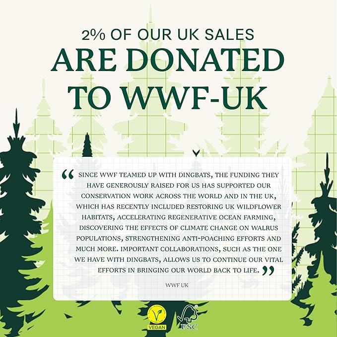 - SUSTAINABLY SOURCED, ENVIRONMENTALLY CONSCIOUS: Made from recyclable materials and FSC certified paper, our notebooks are Vegan Certified. Dingbats* Notebooks Ltd donates 2% of UK sales to WWF-UK, supporting environmental conservation.