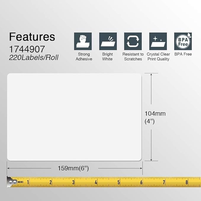 - Specification: 4 in x 6 in (104mm x 159mm) Extra Large Shipping Labels - Replacement for DYMO LW 1744907 S0904980 1755120 1951462 - Paper Tube Diameter:1"(25.4mm) - 10 Rolls & 2200 Labels (220 Labels/Roll)