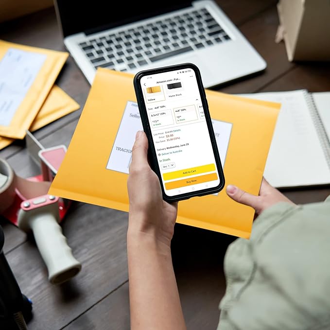 - 【Simple Peel & Seal 】Simply peel and fold over to seal each package safely and securely.Bubble envelopes are equipped with a strong self-sealing adhesive strip that cannot be easily torn apart and tamper-resistant.Moreover,the smooth surface of the yellow Kraft bubble mailers can be written, labelled and stamped.