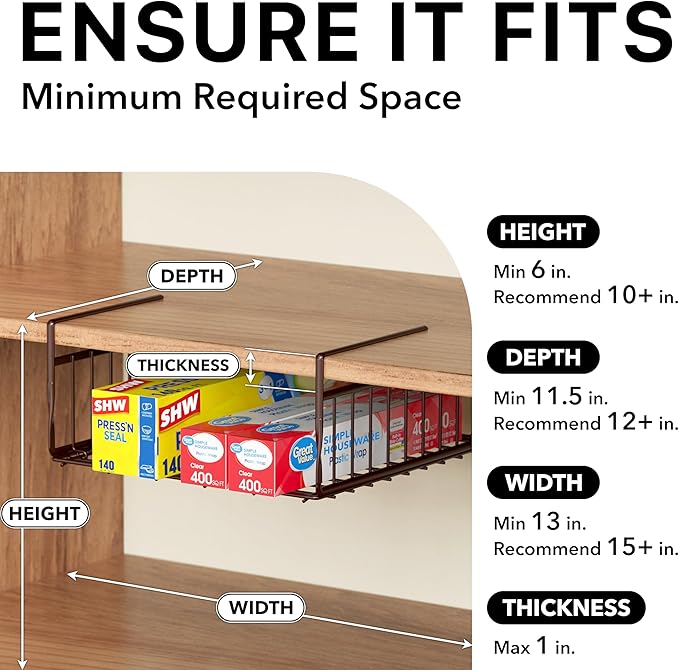- Shelf Space Saver: Instantly add extra storage space by using the underside of your shelf