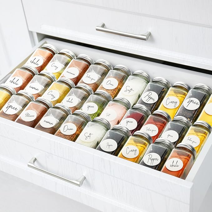 Simple Houseware Spice Jars 4 Ounce Square Bottles w/label, 12 Pack