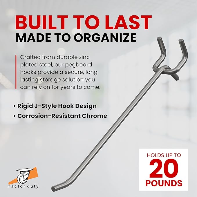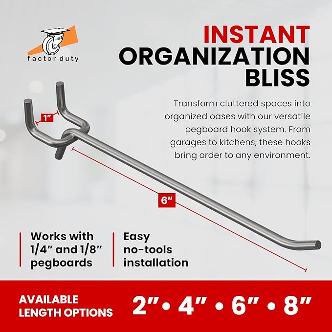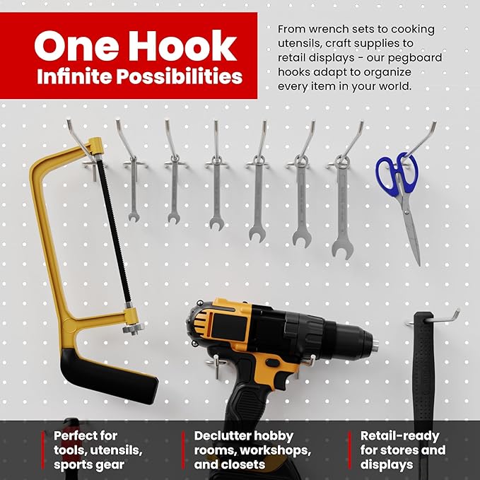 - EASY TO INSTALL AND REMOVE: Corrosion resistant. Our hooks fit all types of 1/4" & 1/8" pegboards with 1" spacing and hook directly into the mounted board, easy to install, use and move with a sturdy 3.8mm diameter and a 20lb capacity