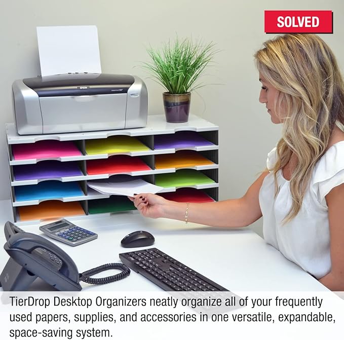Ultimate Office TierDrop Desktop Organizer Document, Forms, Mail, and Classroom Sorter. 12 Letter Size Compartments with Optional Add-On Tiers for Easy Expansion - Gray w/Black