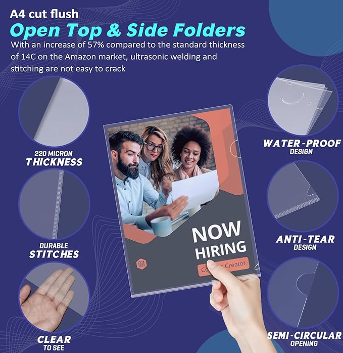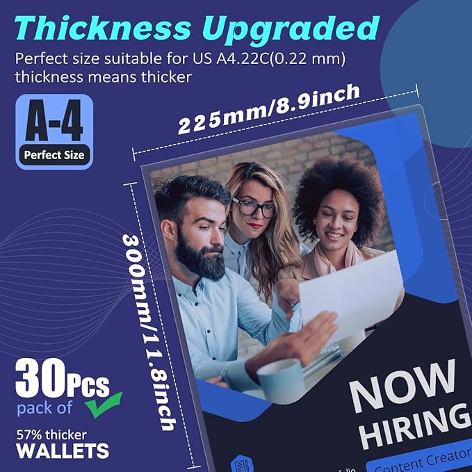 - ❤Upgraded Size: 11.8 in x 8.9 in (300 x 225MM) is upgraded size, more suitable for US A4/ Letter Size. 22C(0.22 mm)thickness means thicker, with an increase of 57% compared to the standard thickness of 14C on the Amazon market, ultrasonic welding and stitching are not easy to crack