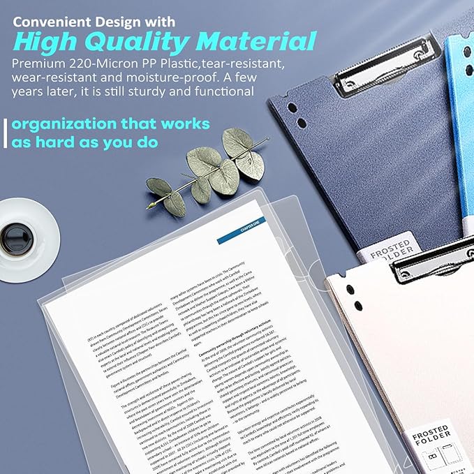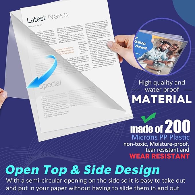 JIKIOU 30 Pack Clear Document Folder Copy Safe Project Pocket L-Type Clear Plastic Folder A4/ Letter Size in Transparent Color(Upgraded Size)