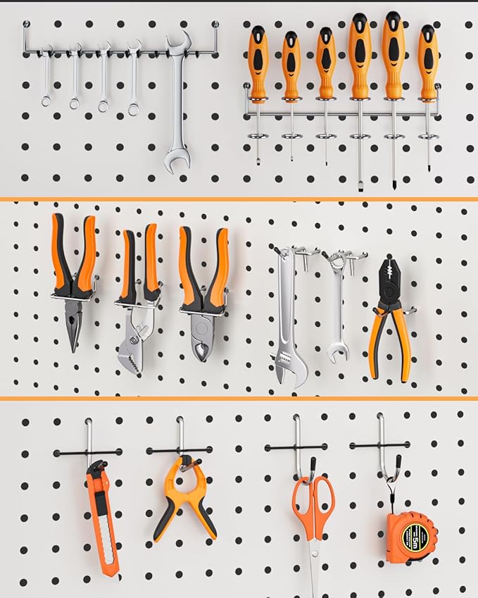 - Peg Board Tool Hangers: These multipurpose peg board hooks could be arranged in a compact style, save more space and get effortless accessible for a variety of small hardware or tool, no more searching for things among the clutter