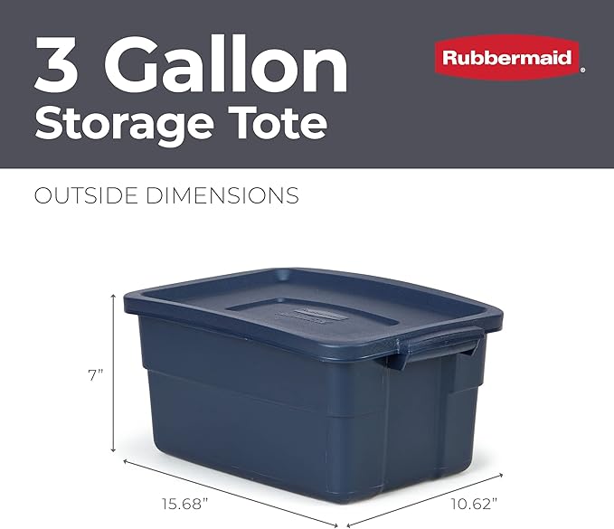 Rubbermaid Roughneck Tote 3 Gal, 6 Pack, Made in USA, Dark Indigo Metallic, Rugged Plastic Stackable Storage Bins with Lids and Handles