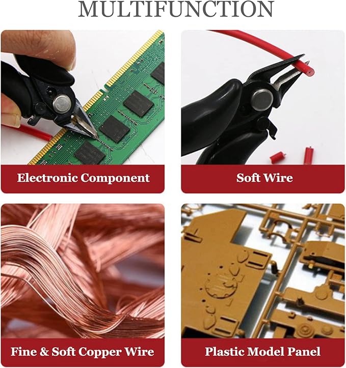 - MULTI-FUNCTIONAL PRECISION PLIERS: The Side Cutting Pliers is suitable for cutting soft wire, soft cable, nail decoration processing, jewelry processing, handicrafts, manual assembly model, fishing lines, electronic devices, thin plastic fringed, soft iron wire,headpins, eyepins,etc.