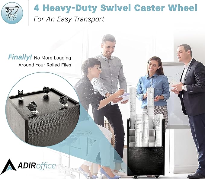 - Versatile use: Adir’s rolled files organizer serves multiple purposes. It can be used as a blueprint storage cabinet, rolled poster storage, vinyl roll holder, map storage cart, architectural plan storage, and more.
