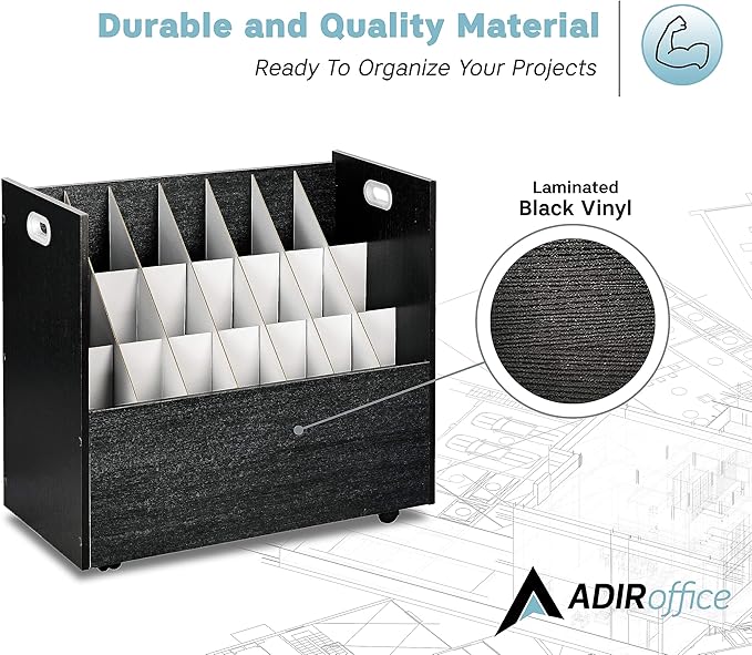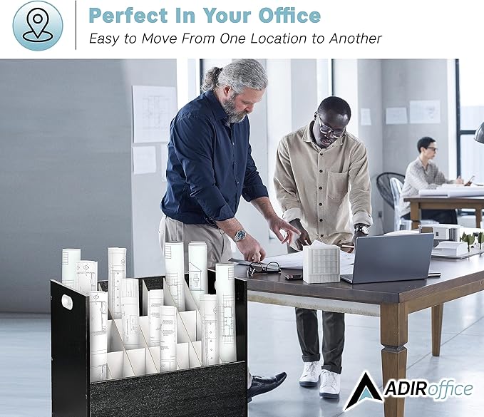 - Versatile use: Adir’s rolled files organizer serves multiple purposes. It can be used as a blueprint storage cabinet, rolled poster storage, vinyl roll holder, map storage cart, architectural plan storage, and more.
