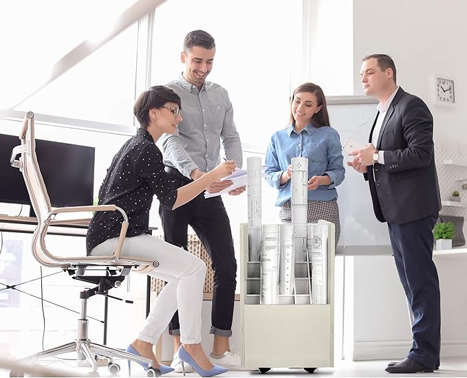 - Versatile use: Adir’s rolled files organizer serves multiple purposes. It can be used as a blueprint storage cabinet, rolled poster storage, vinyl roll holder, map storage cart, architectural plan storage, and more.