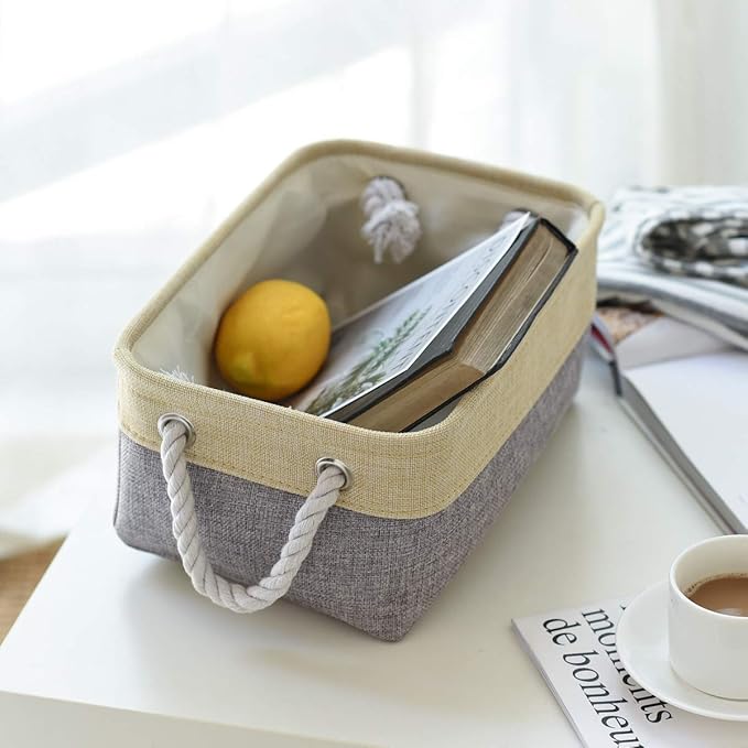 TheWarmHome Storage Baskets for Organizing - 11.8x7.8x5.2 inch Small 6 Pack Storage Bins for Shelve, Farbic Storage cubes Organizer for Baby Toys Nursery (Gold & Grey)