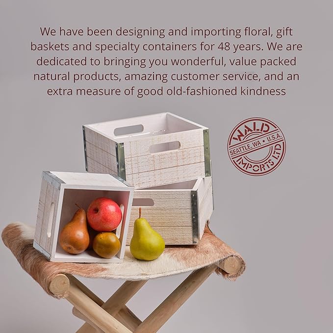 wald imports - Set of 3 Rustic Distressed Wooden Crates for Storage - Decorative Wooden Crate Set for Home Decoration & Display - Vintage Storage for Household Goods