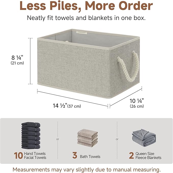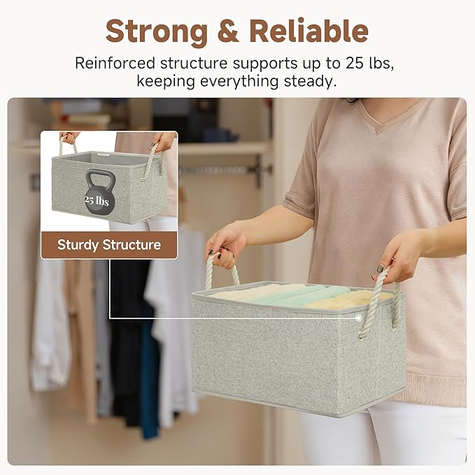 - Closet baskets feature two soft rope handles for comfortable grasping and easy carrying.