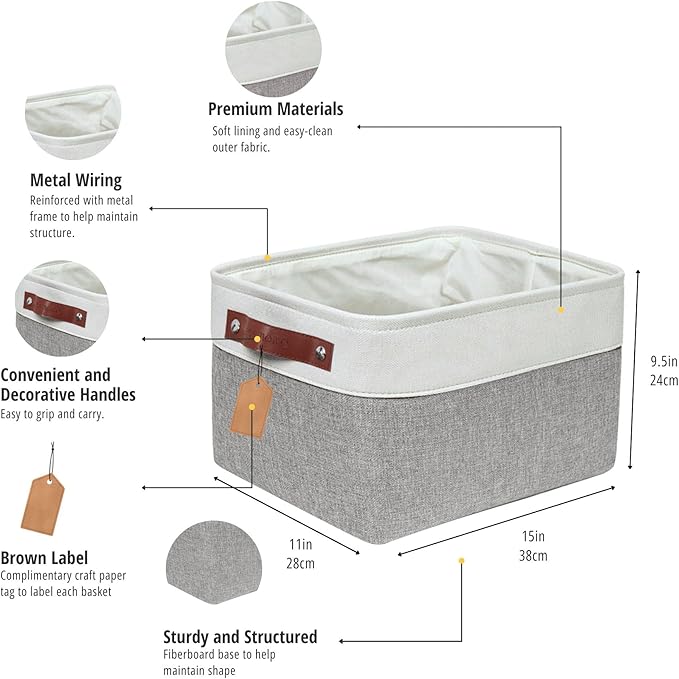 - Label & Decorate: DECOMOMO’s fabric storage bins come with complementary craft paper tag and jute string to label each basket and identify the items inside easily.