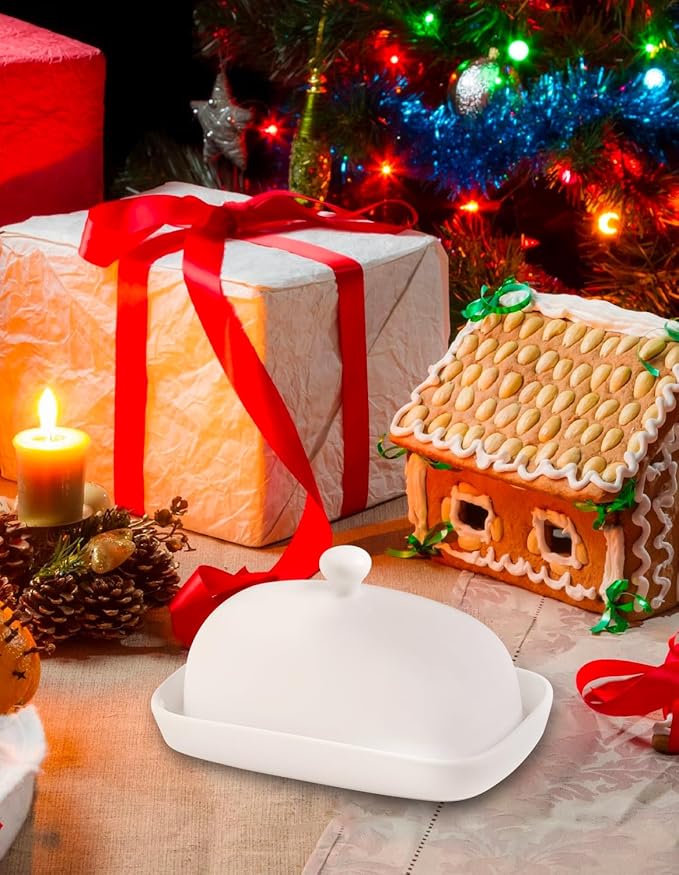- [Ideal Gift]This butter container with lid is artistic and practical,convenient for you to use fresh butter anytime, anywhere. At the same time, Sweejar ceramic butter dish is an ideal gift for yourself, family, and friends.Great gift for every festival, such as Christmas Thanksgiving Day, housewarming gift