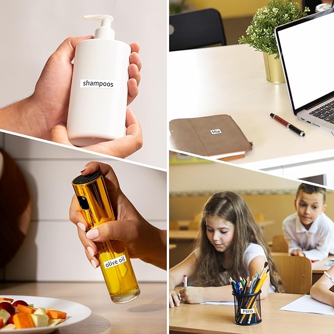 - Non-Laminated durable labels: water-resistant, fade-resistant, abrasion-resistant, chemical-resistant, temperature-resistant. They are an ideal solution for labeling tasks including files, folders, classify files, shelves, kitchen, books, supply cabinets, accessories, etc.