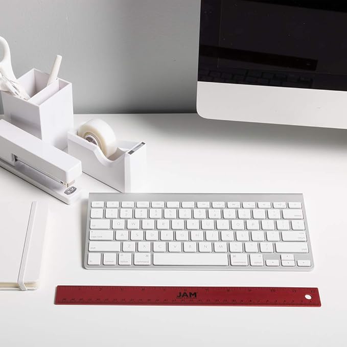 JAM PAPER Strong Aluminum Ruler - 12 Inch - Metal Ruler with Non-Skid Cork Backing - Red Metallic - Sold Individually