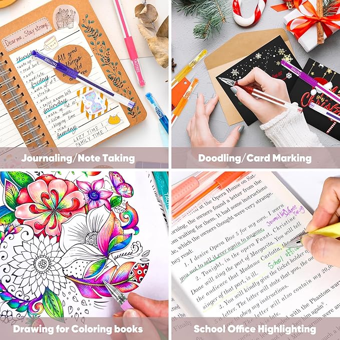 - Each Gel Pen is fitted with Comfort Grip, easy to hold and comfortable for writing, drawing, scrapbooking, sketching, Crafting, doodling, art designs and journaling. coloring pens for adults.