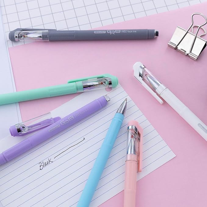 BAZIC Oil Gel Fuse Tech Ink Pen, GR8 Dazzle Black Ink w/Rubberized Barrel, 0.7 mm Medium Point Smooth Writing, for Office School (3/Pack), 24-Pack