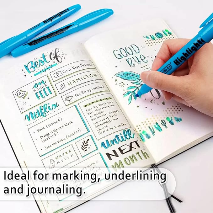 Shuttle Art Highlighters, 30 Pack Blue Highlighters Bright Colors, Chisel Tip Dry-Quickly Non-Toxic Highlighter markers for Adults Kids Highlighting in the Home School Office