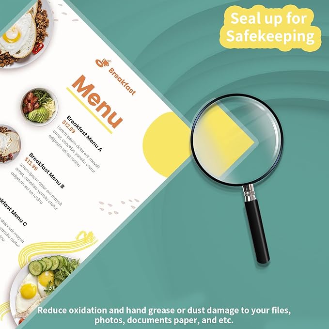 - 【Widely Used】Compatible with all laminating machines that support 8.9 x 11.4 Inch sheets. It is widely used in the protection and preservation of documents, photos, specimen albums, menus, newspaper clippings, office documents and other graphic materials.