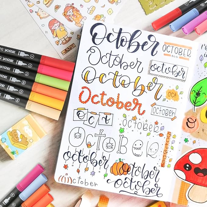 - STAY NICE AND ORGANIZED GREAT GIFT: Our Duo tip marker pens organized in the included container! Wonderful Gift for Birthday, Graduation, Halloween, Christmas, Thanksgiving day or anyone who loves drawing, painting, sketching, writing, journaling, brush lettering, crafting, doodling, watercolor painting, illustrations.