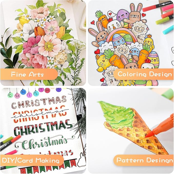 ZSCM 32 Colors Duo Tip Brush Markers Art Pen Set, Artist Fine and Brush Tip Colored Pens, for Adult Coloring Books Christmas Cards Drawing, Note taking Lettering Calligraphy Journaling