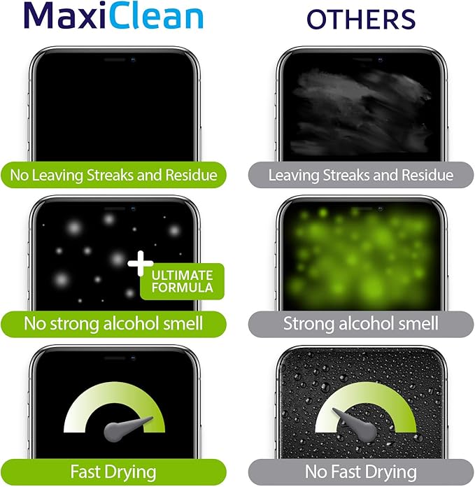 - Eco-Friendly - The innovative formula of MAXI CLEAN phone screen cleaner wipes is not only ammonia-free and without the harsh smell, but also features nonwoven material that is compostable.
