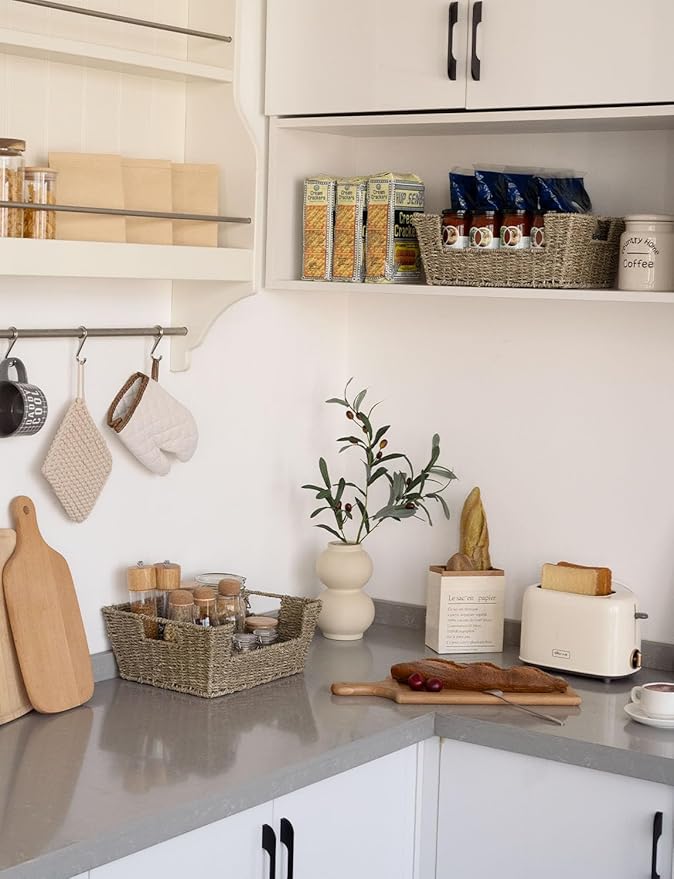 StorageWorks Wicker Storage Basket for Pantry Organizers and Storage, Stackable Seagrass Pantry Baskets for Shelves, 2-Pack