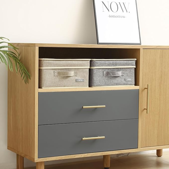 - 【SUPERIOR MATERIAL】This Fabric Storage Box With lids is made from outer resistant fabric, with supporting board for reinforced structure, Easy to fold down when not in using. Front sewn on handle to easily move and slide the box off of shelves as needed.