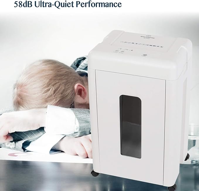 WOLVERINE 15-Sheet Super Micro Cut High Security Level P-5 Heavy Duty Paper/CD/Card Shredder for Home Office, Ultra Quiet by Manganese-Steel Cutter and 8 Gallons Pullout Waste Bin SD9520 (White ETL)