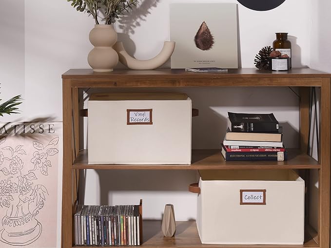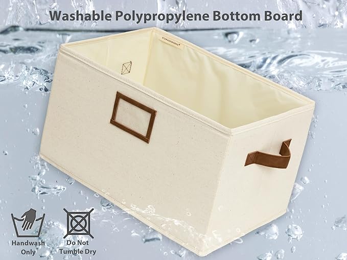 - Storage baskets with two sewn-in PU handles for easy carrying around, and the label holder for easy marking and identifying the items inside.