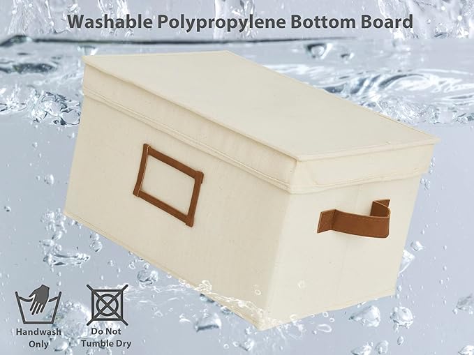 StorageWorks Large Storage Bins with Lids, Decorative Storage Boxes with Lid and PU Handles, Foldable Storage Baskets for Closet, Shelves, Stackable, Ivory White, 3-Pack