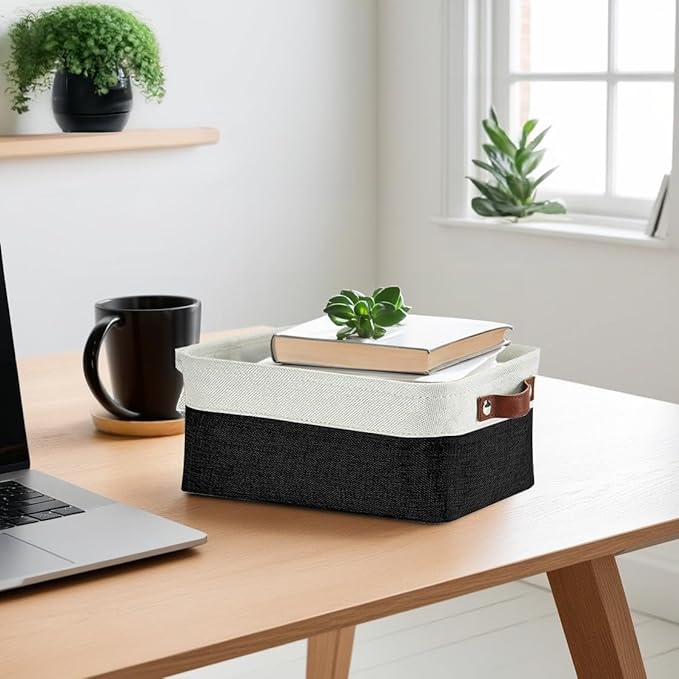 DECOMOMO Small Storage Basket, Closet Storage Bins, Baskets for Organizing Shelves (Black & White, Small - 6 Pack)