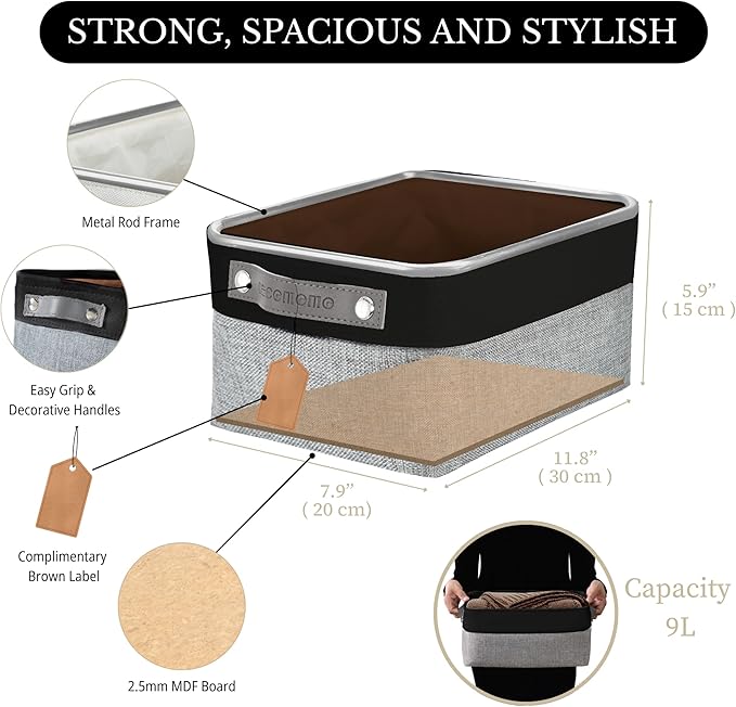- Durable Design: DECOMOMO's baskets feature a sturdy metal frame, extra thick EVA exterior, polyester interior, 2.5mm MDF fiberboard bottom, and faux leather handles capable of holding up to 15 lbs.
