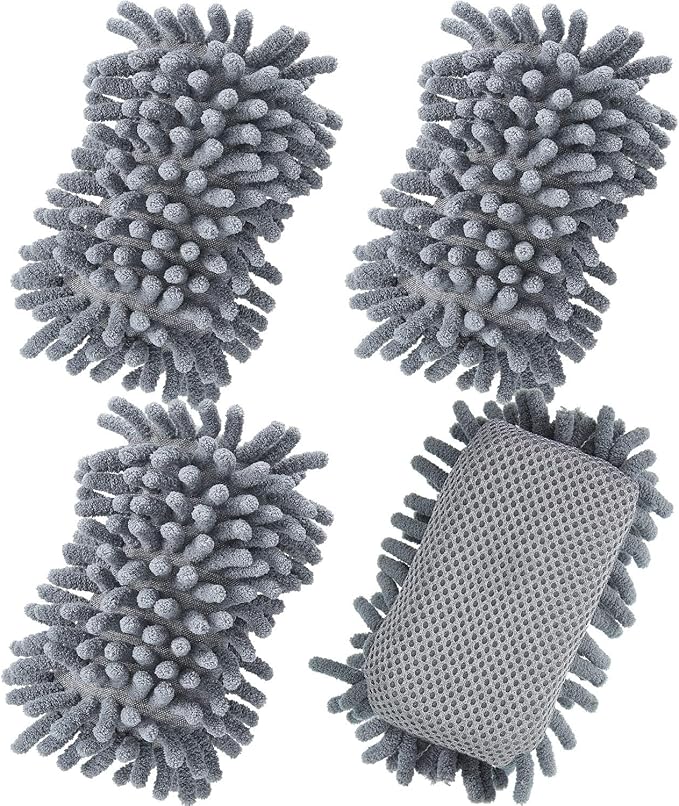 Zonon 4 Pieces Dry Erase Eraser Microfiber Shag Washable Whiteboard Eraser for Markers, Chalk, Classroom, Home and Office(Gray)