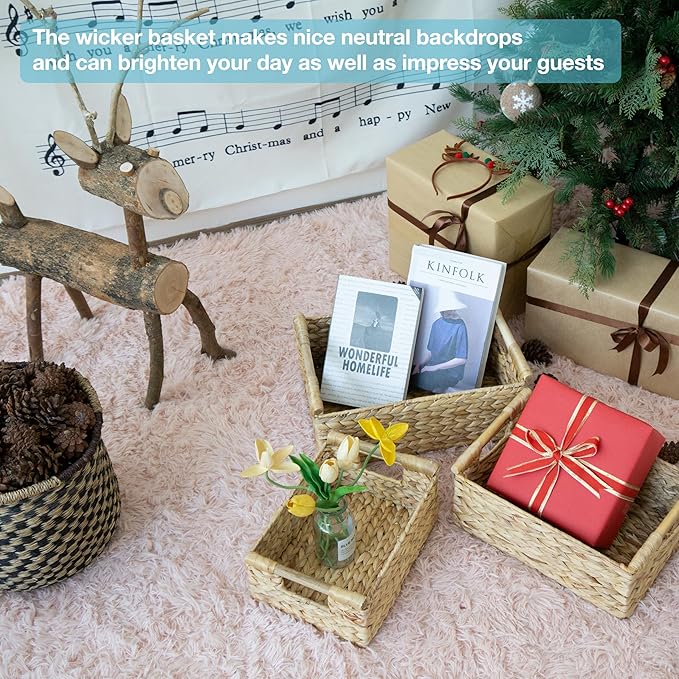 - ✅ Decorative Wicker Baskets - Natural water hyacinth basket is an easy and affordable way to change the style of your home. With their natural design, the wicker basket makes nice neutral backdrops and can brighten your day as well as impress your guests.