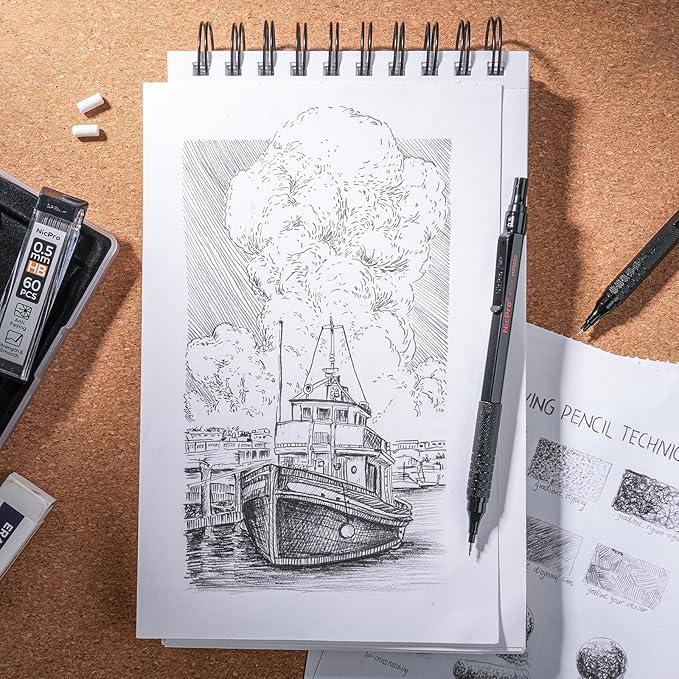 - 【Metal Threaded Anti-skidding Grip】: Nicpro MP1000 pencil adopt fancy hexagon barrel design with metal threaded grip, well balance pencil which bring you comfortable & fatigue-free writing & drafting experience
