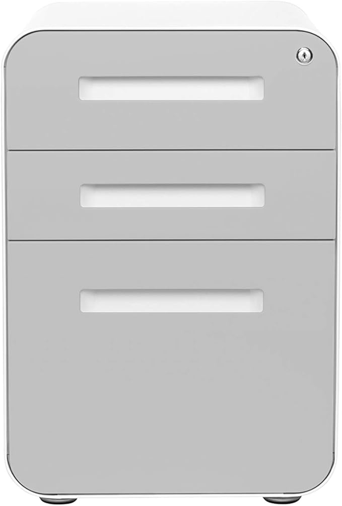 Laura Davidson Furniture Stockpile 3 Drawer File Cabinet with Lock - Under Office Desk Metal Filing Cabinet, Legal/Letter File Folders, Wheels and Stationary Feet, Pre-Assembled, Light Grey Faceplate